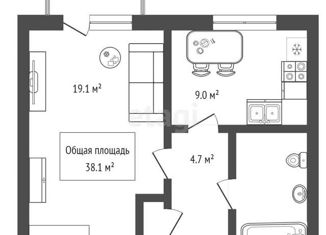 Общая площадь: 38.1 м2