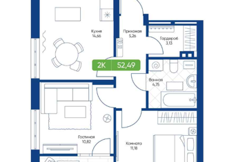 Продается 2-ком. квартира, 52.27 м2, улица Королёва, 2