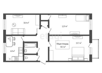 Общая площадь: 58.3 м2