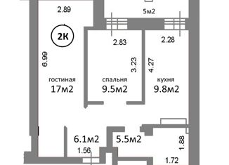 Общая площадь: 59.5 м2