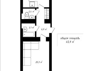 Общая площадь: 45.9 м2