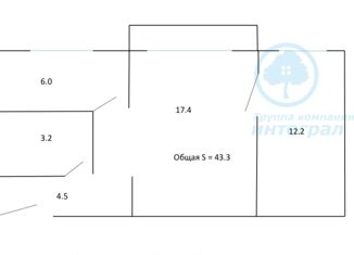 Общая площадь: 43.3 м2