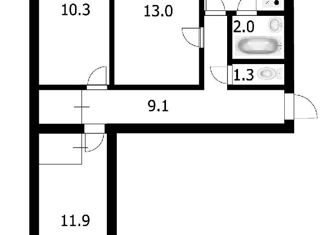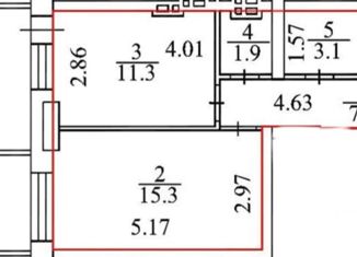 Продажа трехкомнатной квартиры, 55.3 м2, Вертковская улица, 23