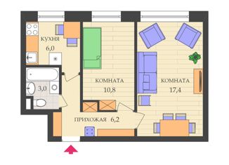 Двухкомнатная квартира на продажу, 43.2 м2, Академическая улица, 36