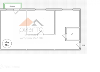 Общая площадь: 43 м2