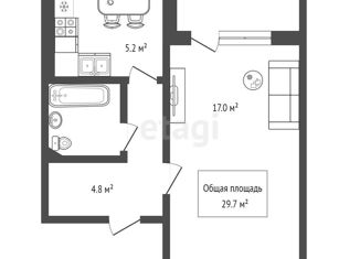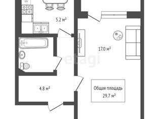Общая площадь: 29.7 м2