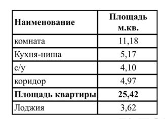 Общая площадь: 25.42 м2