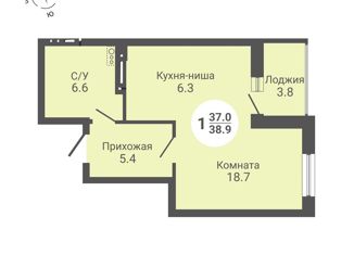 Общая площадь: 38.9 м2