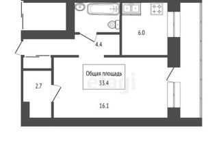 Общая площадь: 33.4 м2