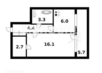 Общая площадь: 33.7 м2