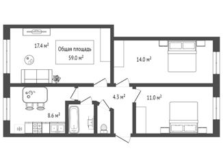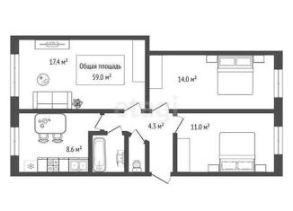 Общая площадь: 59 м2