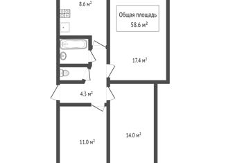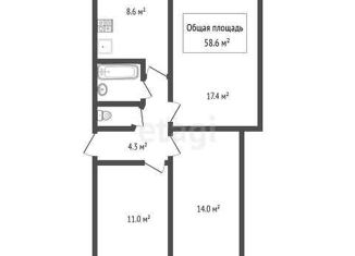 Общая площадь: 58.6 м2