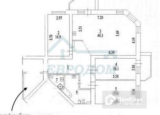 Общая площадь: 44.4 м2