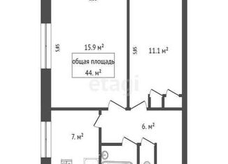 Общая площадь: 44.4 м2