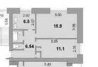 Общая площадь: 55.6 м2