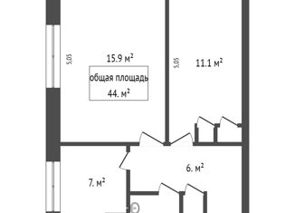 Общая площадь: 44 м2