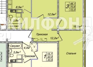 3-комнатная квартира на продажу, 72 м2, улица Ясный Берег, 9