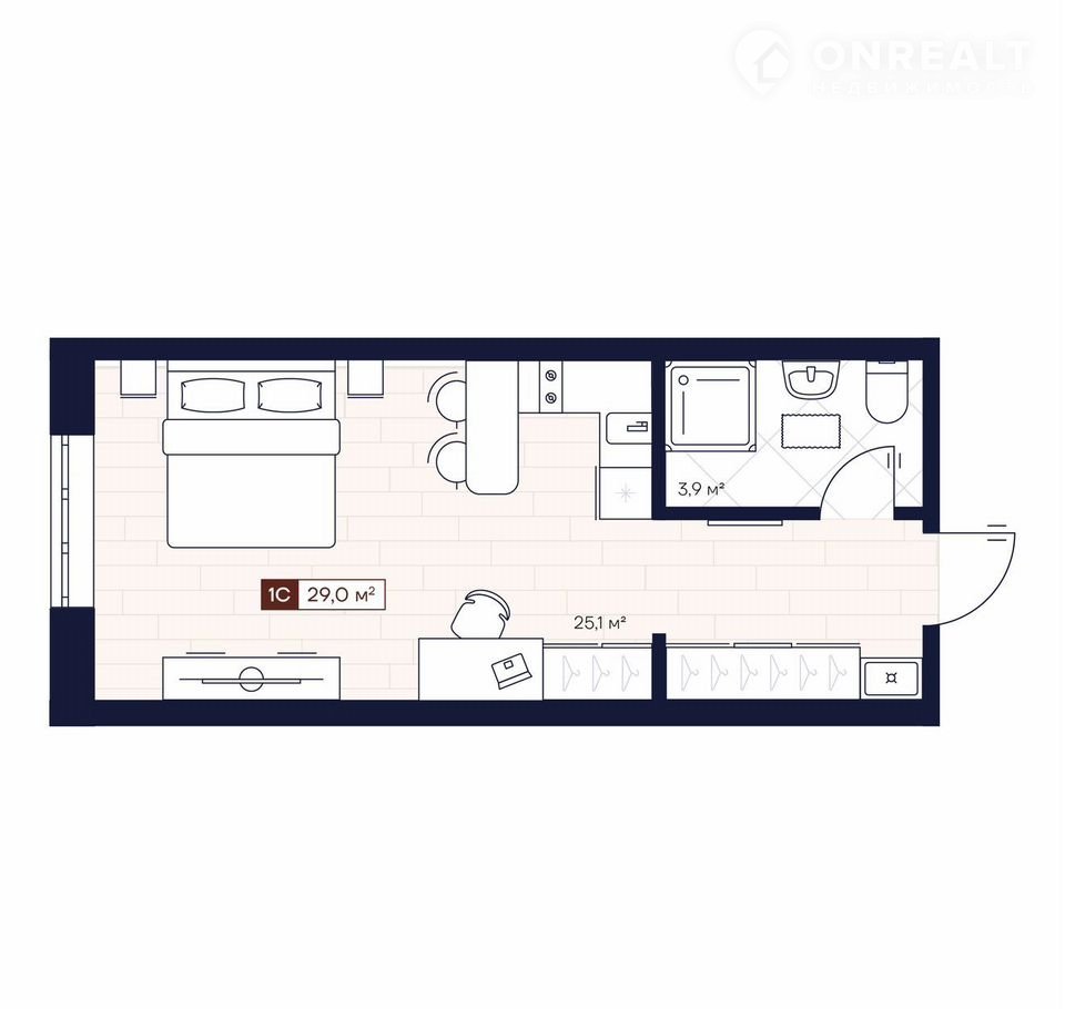 Общая площадь 29 м2