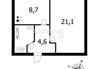 Продам однокомнатную квартиру, 30.8 м2, Серебренниковская улица, 2