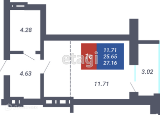 Продажа квартиры студии, 27.6 м2, Светлановская улица, 52/1