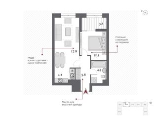 Общая площадь: 42 м2