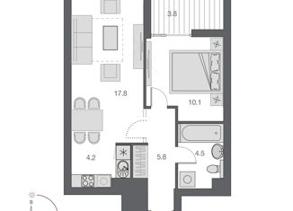 Общая площадь: 42.1 м2