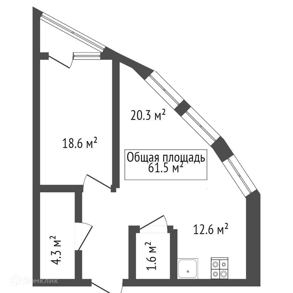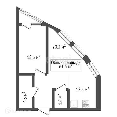 Общая площадь 62.4 м2
