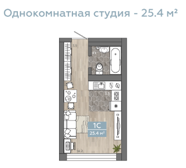 Жилая площадь 21.2 м2