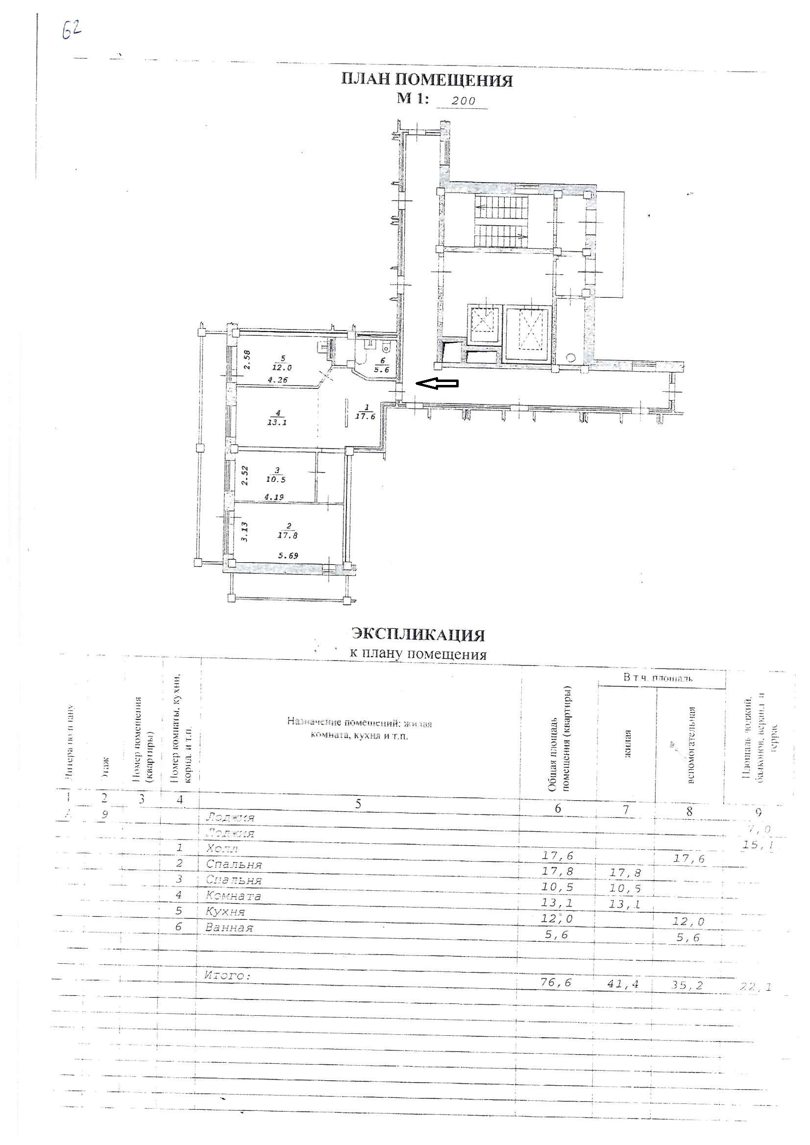 Жилая площадь 41.4 м2