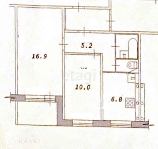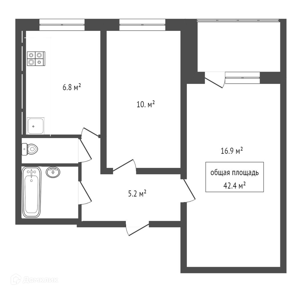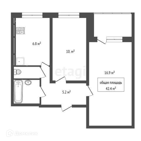 Общая площадь 42.4 м2