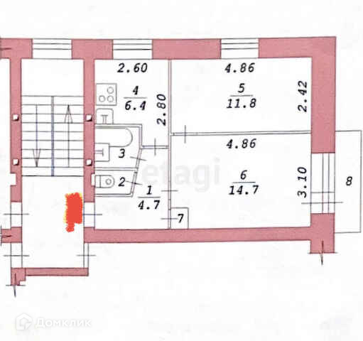 Общая площадь 40.8 м2