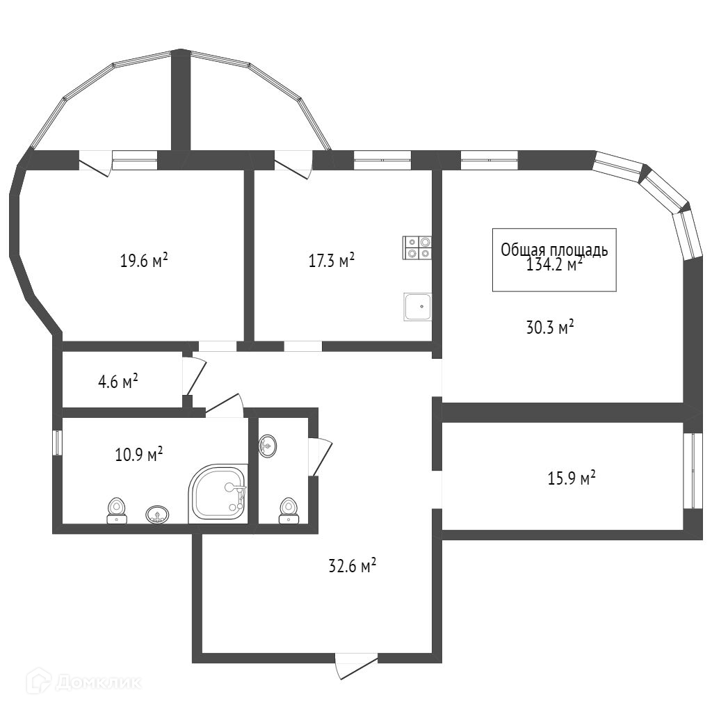 Общая площадь 134.2 м2