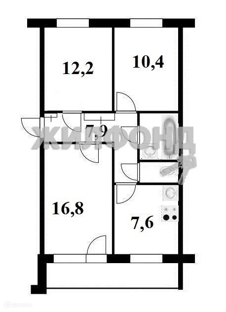 3-комнатная квартира, 59.6 м2, этаж 1 / 5, на продажу в Новосибирске, улица Солидарности, 12