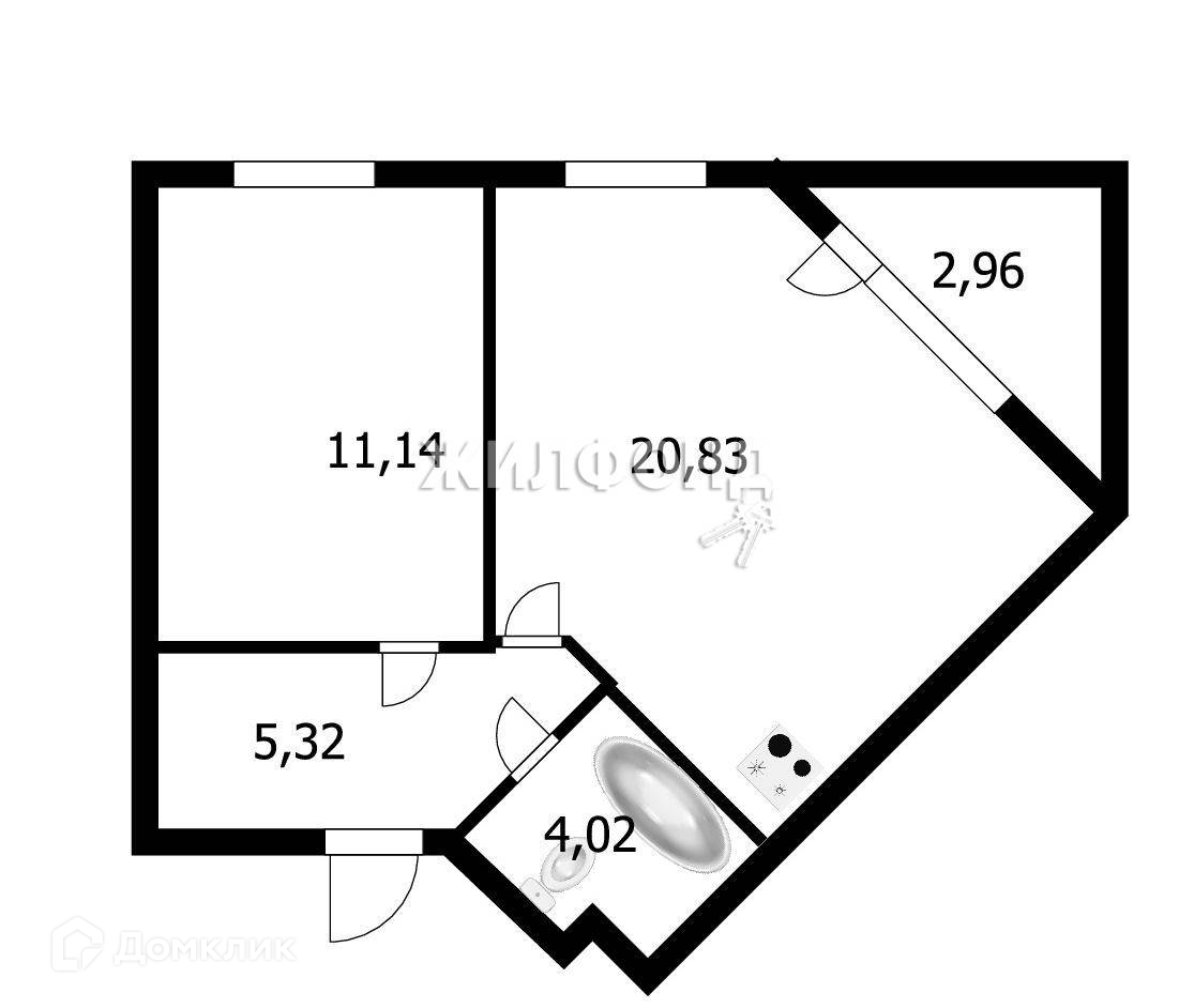 1-комнатная квартира, 41.1 м2, этаж 7 / 17, на продажу в Новосибирске, Тульская улица, 80