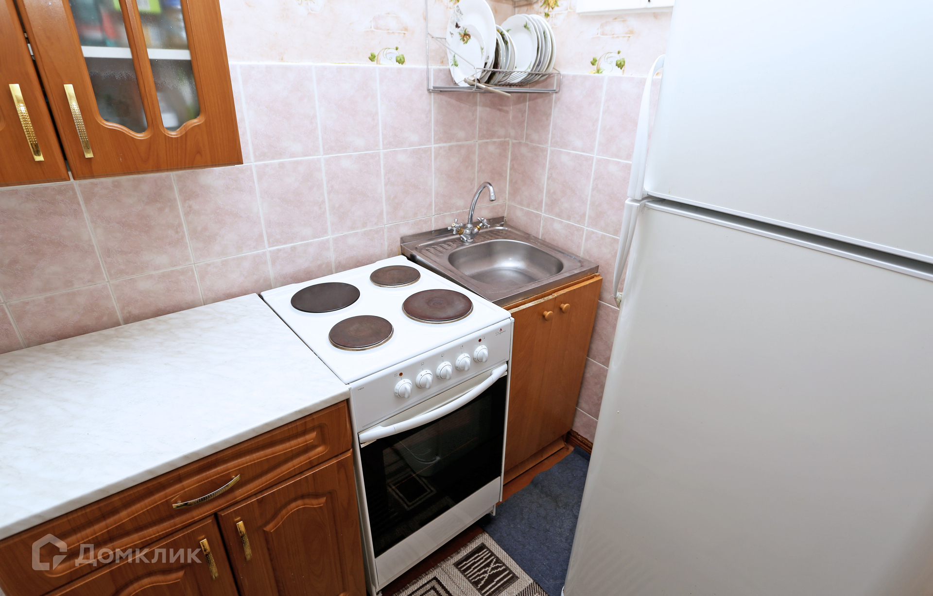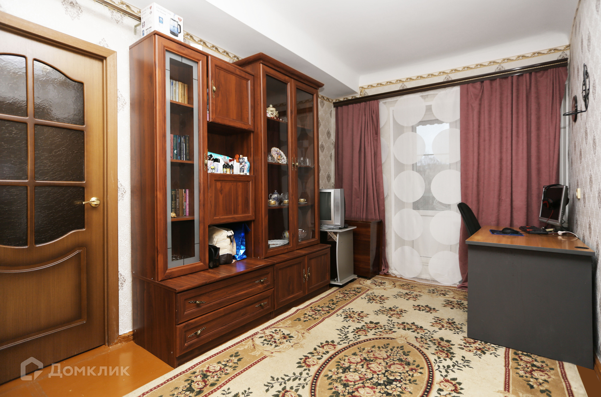 Состояние хорошее, можно заехать и жить.  Окна все пластиковые, балкон остеклен.