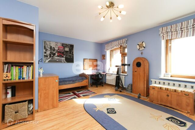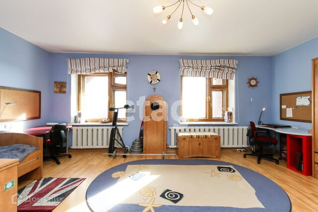 На втором этаже спальня (21м) с гардеробной, две детские комнаты (14 м и 25 м), два санузла с ванной и душевыми.