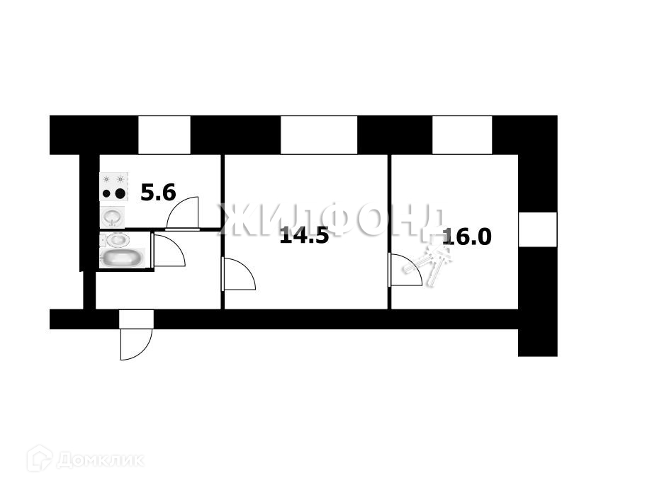 Жилая площадь 27.2 м2