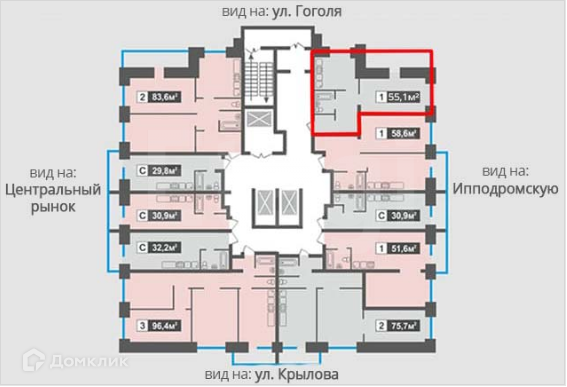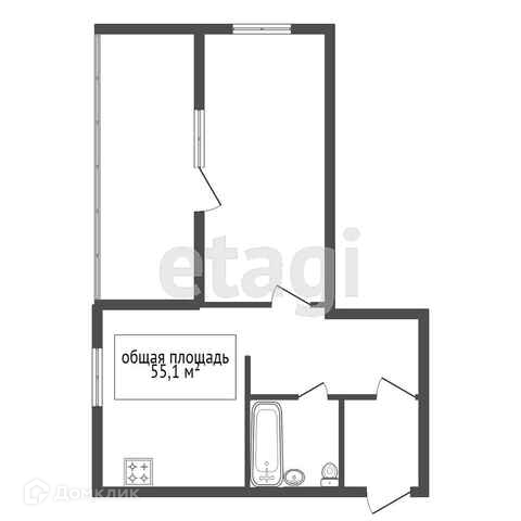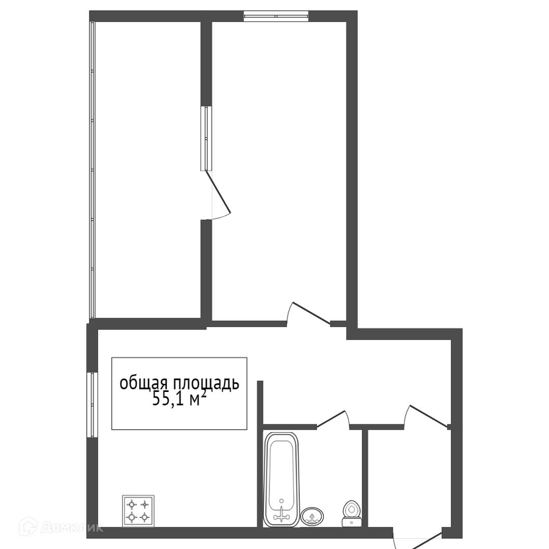 Общая площадь 55.1 м2