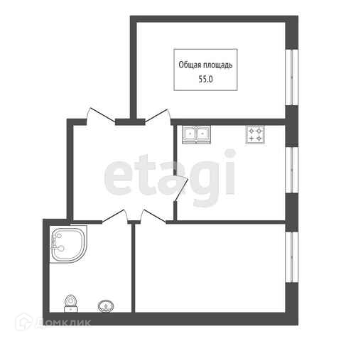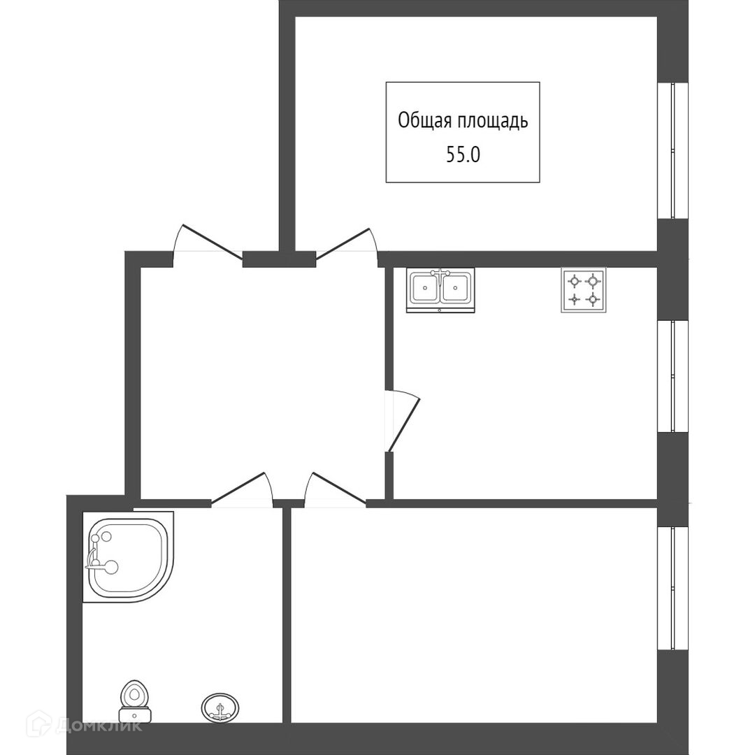Общая площадь 55 м2