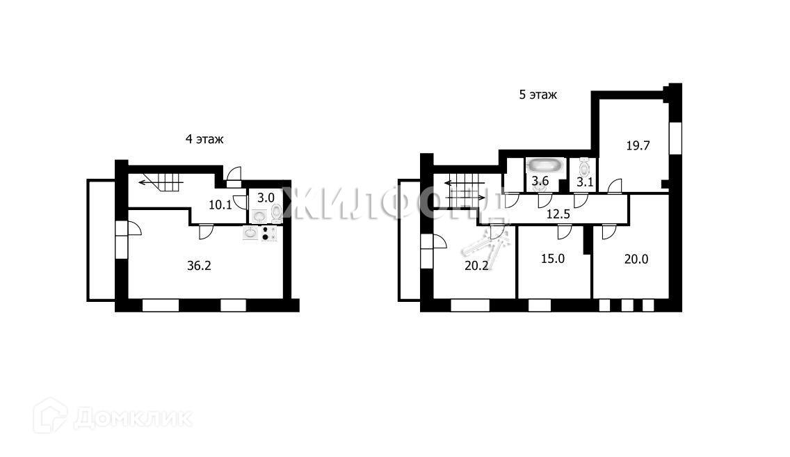 Объект находится в малоэтажной части дома на комфортных 4 и 5 этажах.