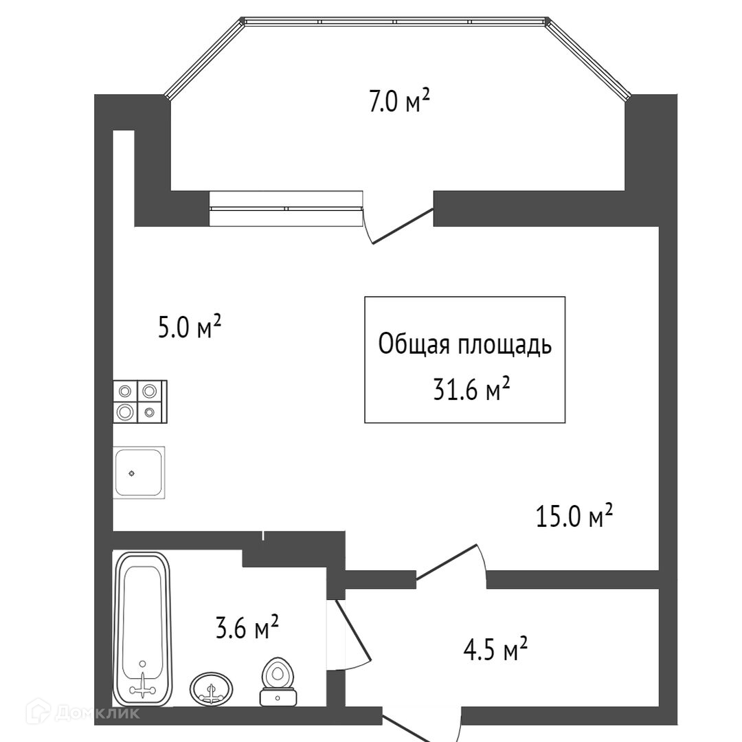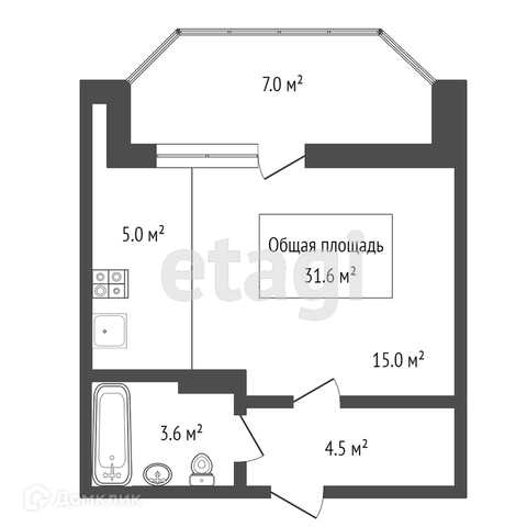 Общая площадь 31.6 м2