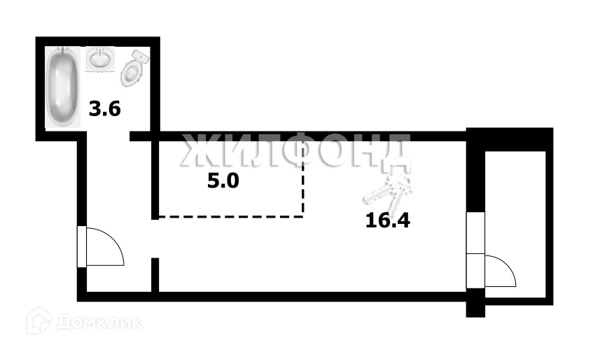 Жилая площадь 16.4 м2