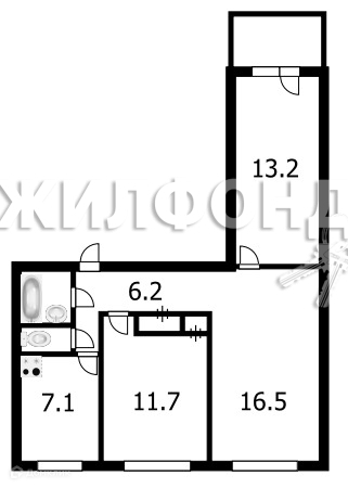 Балкон, лоджия 1 лоджия