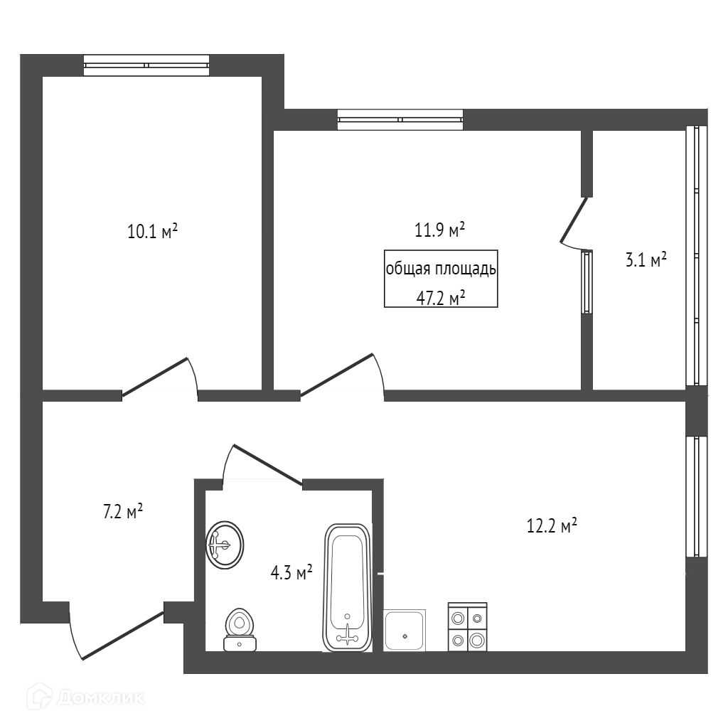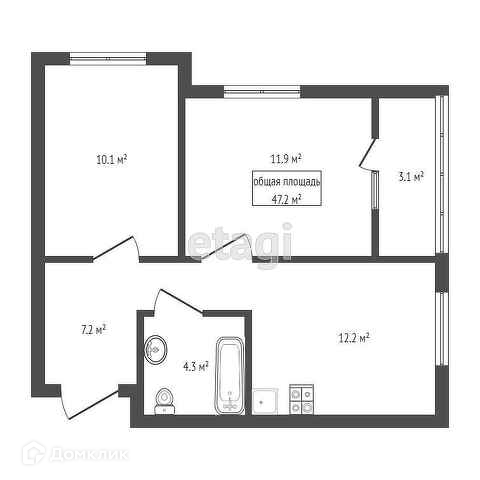 Общая площадь 47.2 м2