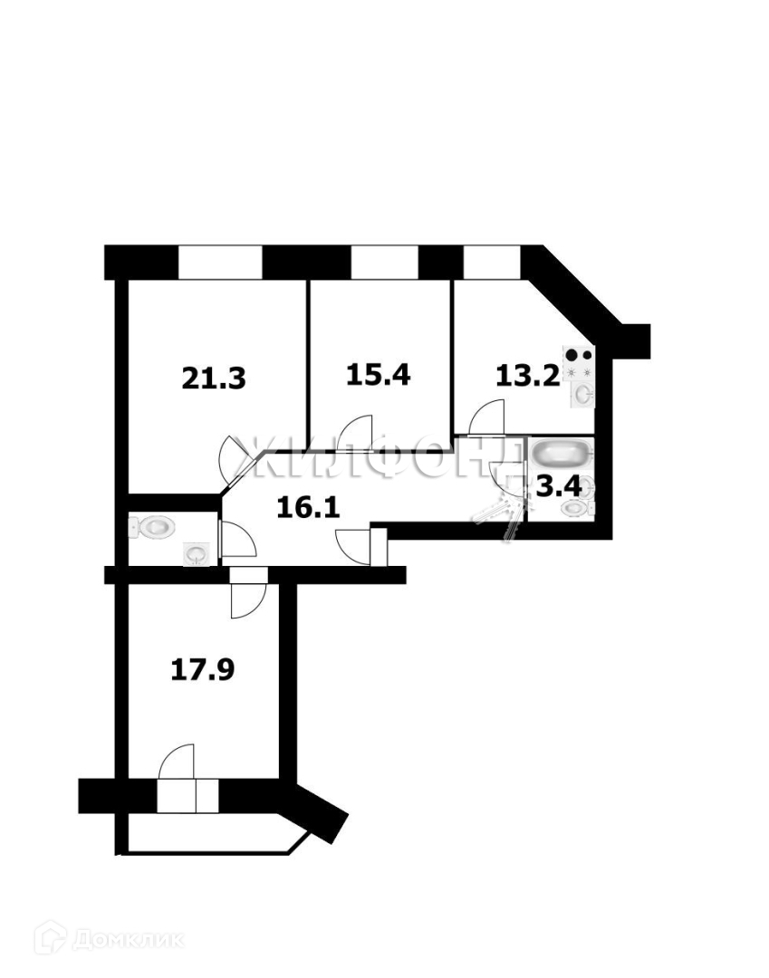 Жилая площадь 49.9 м2