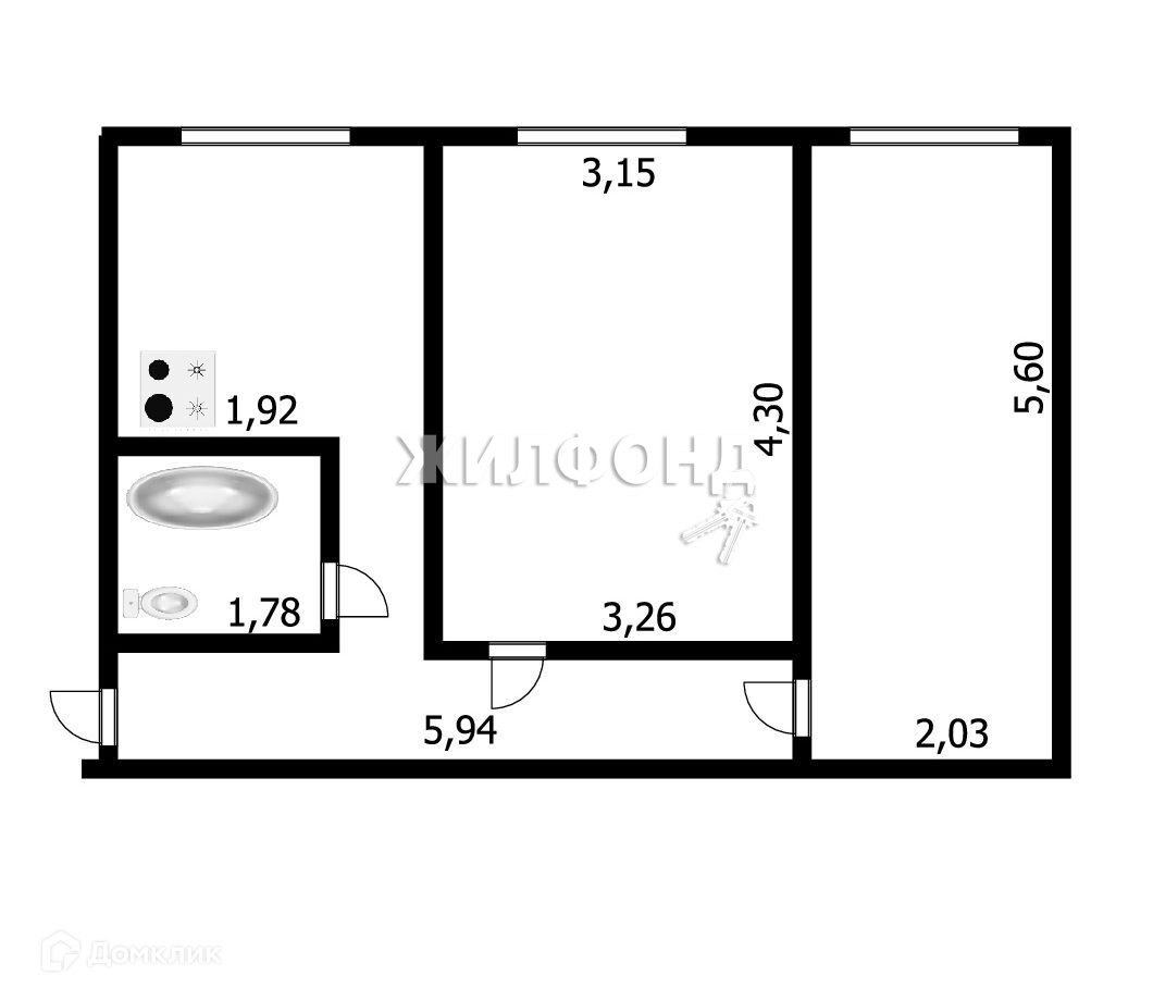 Общая площадь 43 м2