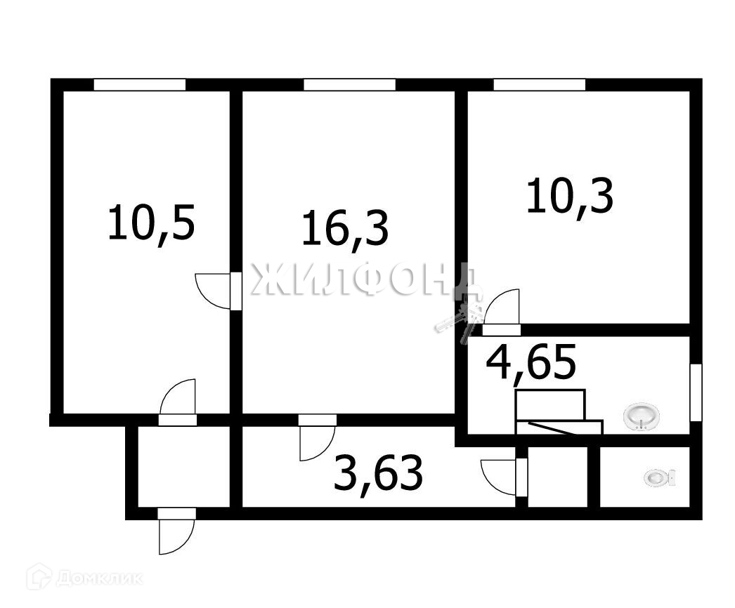 3-комнатная квартира, 49.1 м2, этаж 1 / 2, на продажу в Новосибирске, Днепровская улица, 15