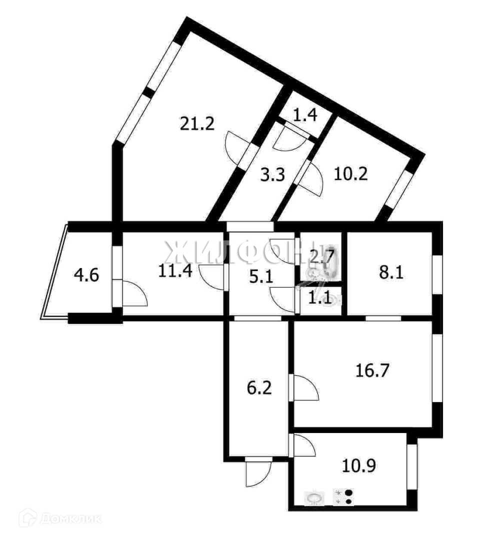 Площадь кухни 10.9 м2