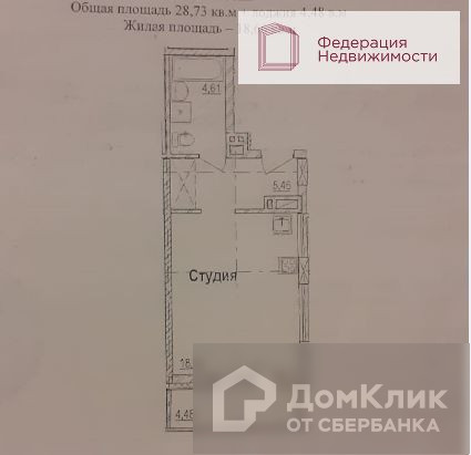 Общая площадь 28.73 м2