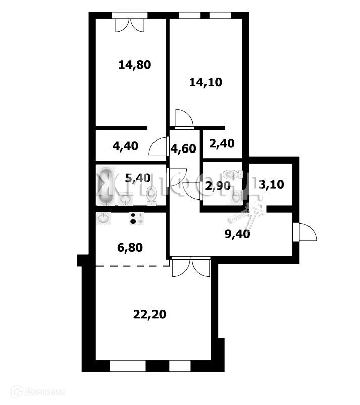Площадь кухни 22.2 м2